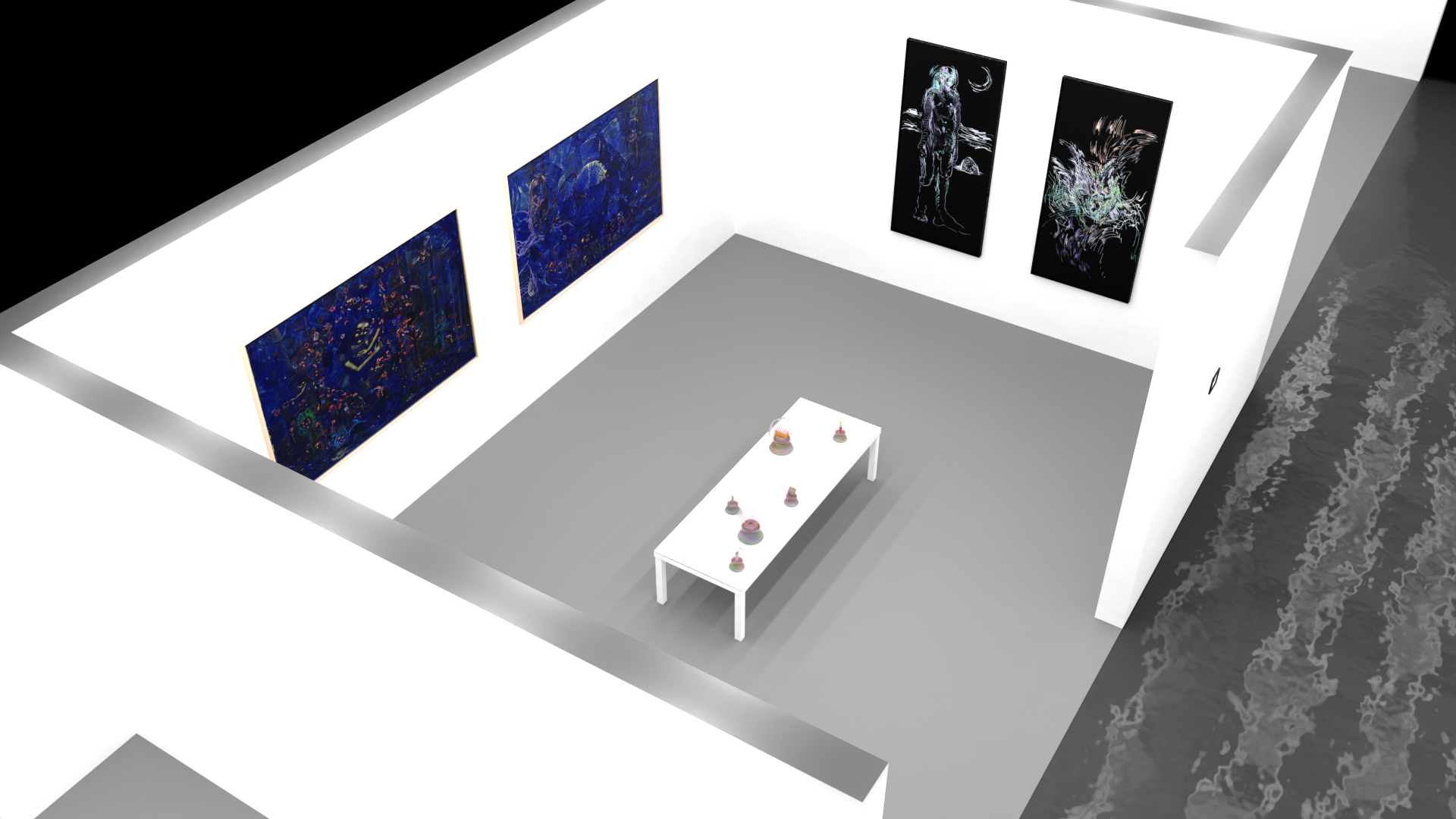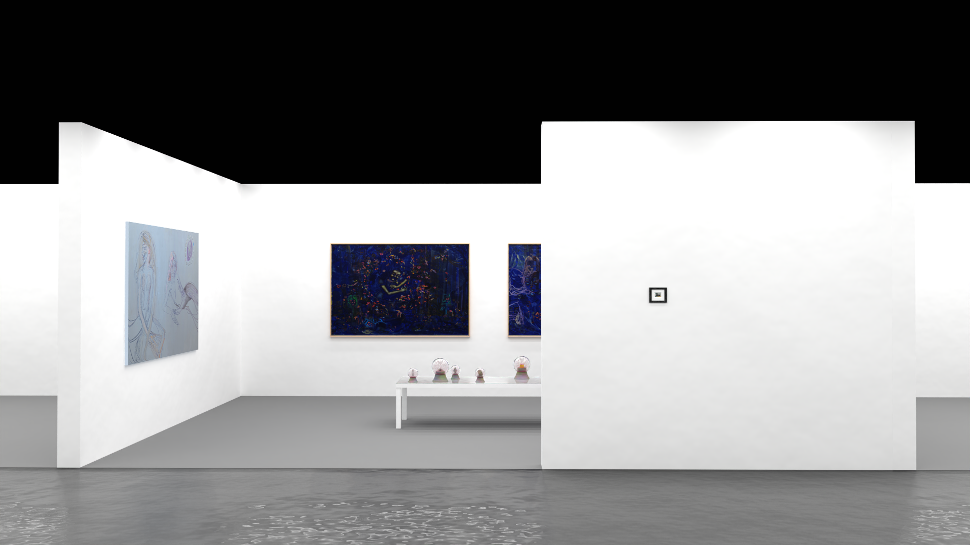 Rendus 3D d’un plan de montage pour une foire d’art contemporain pour la Galerie Sultana.